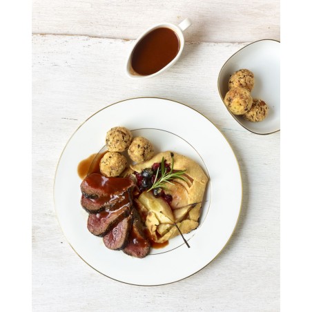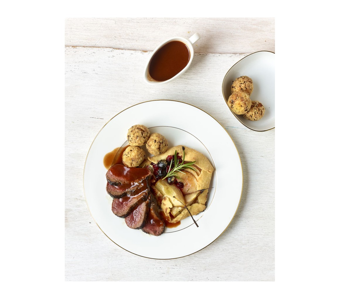 Rôti de biche cuit à la broche et sa sauce grand veneur – Maison Meheust