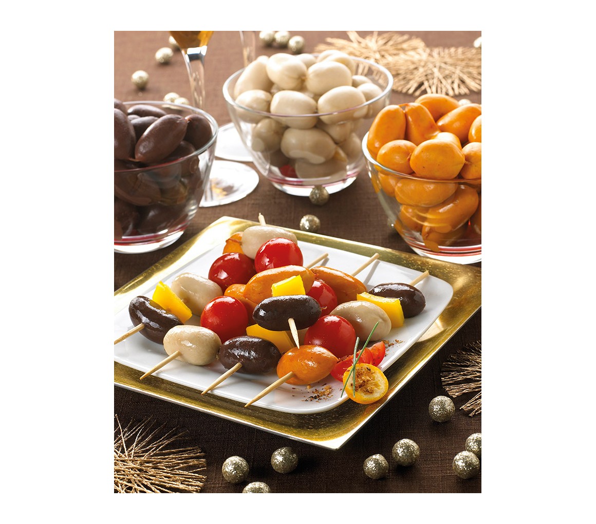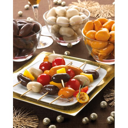 – Présentés en brochettes apéritives avec quelques légumes grillés